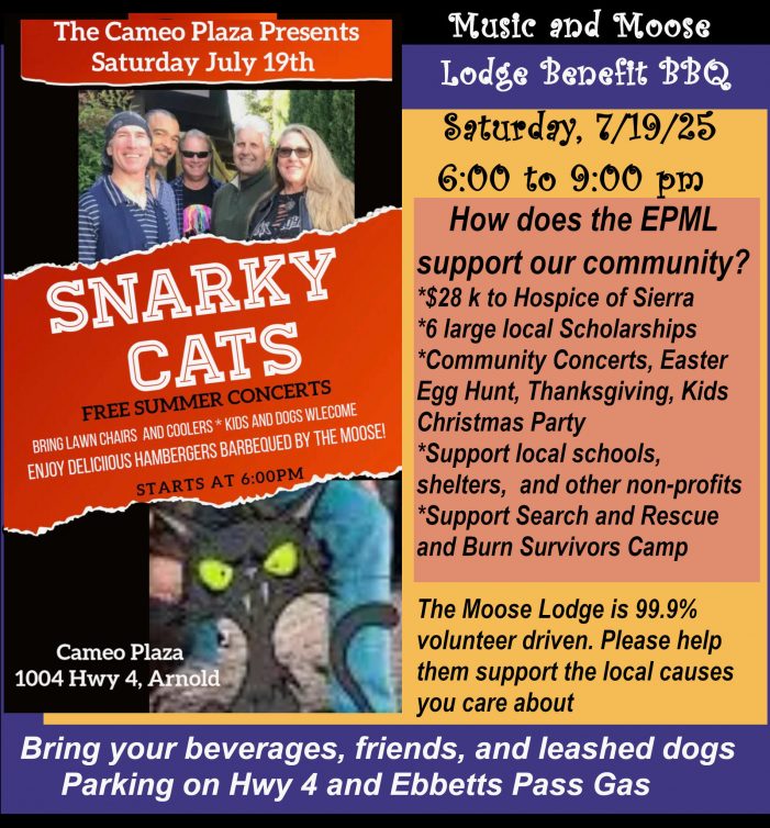 Arnold, CA…Ebbetts Pass Moose Lodge is hosting its annual free community Thanksgiving Dinner on Thursday, November 27 from 1 – 4 p.m. Dinner will be served in the lodge dining room. Delivery service is available for “home-bound” people. Call 209-795-3112 on Thanksgiving day from 9 – 11:30 a.m. for home delivery. Donations to help support […]