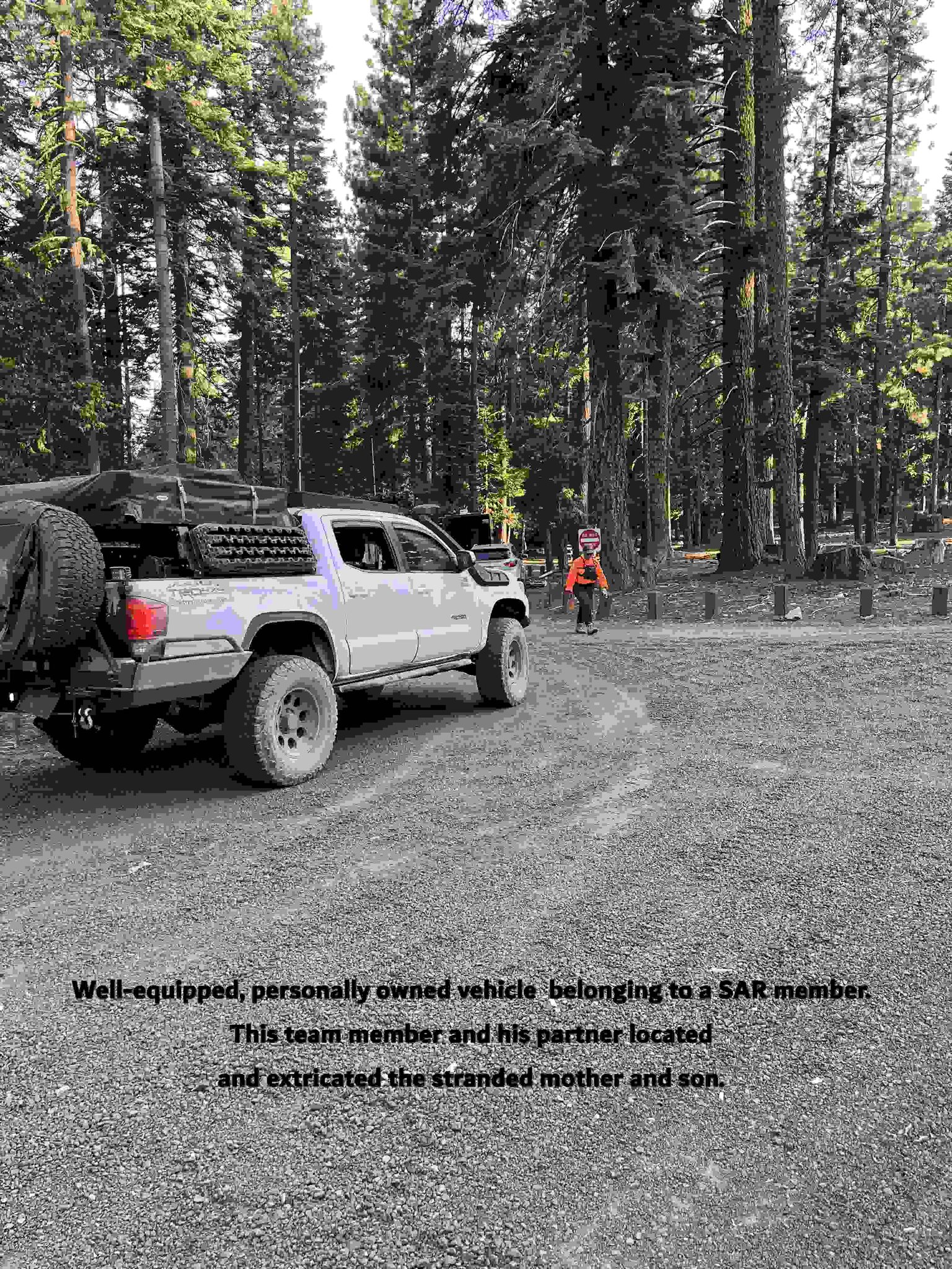 While conducting their search, a Deputy and a Forest Service Law Enforcement Ranger responded to a 911 text from campers in the area between Black Springs and Winton Road, who reported observing a vehicle matching the description of the missing persons around 4:00 PM on July 11. This information, along with data provided by the reporting party, confirmed that the teams were searching in the correct area.
