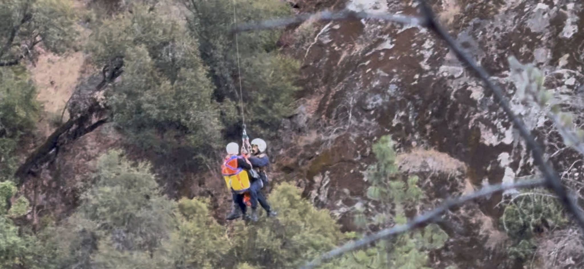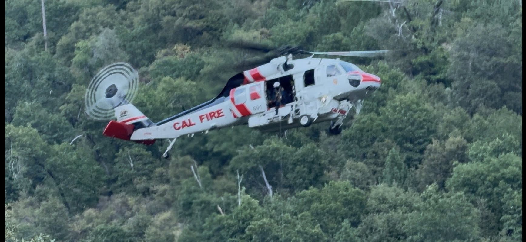 Arnold, CA…EPFD and Cal Fire were dispatched to a female fall victim with a head injury at the Candy Rock Swimming Hole. With the injuries and terrain that the victim was in, units requested Cal Fire’s Helicopter 601, from Columbia. Helicopter 601 with hoisting capabilities was able to lower rescuers to the victim, extract the victim and EPFD’s paramedic from the scene. 601 was then able to rendezvous with EPFD’s Ambulance and PHI Med 4-2 Sonora at Crescent Cove LZ. The victim was then flown to a valley trauma center.