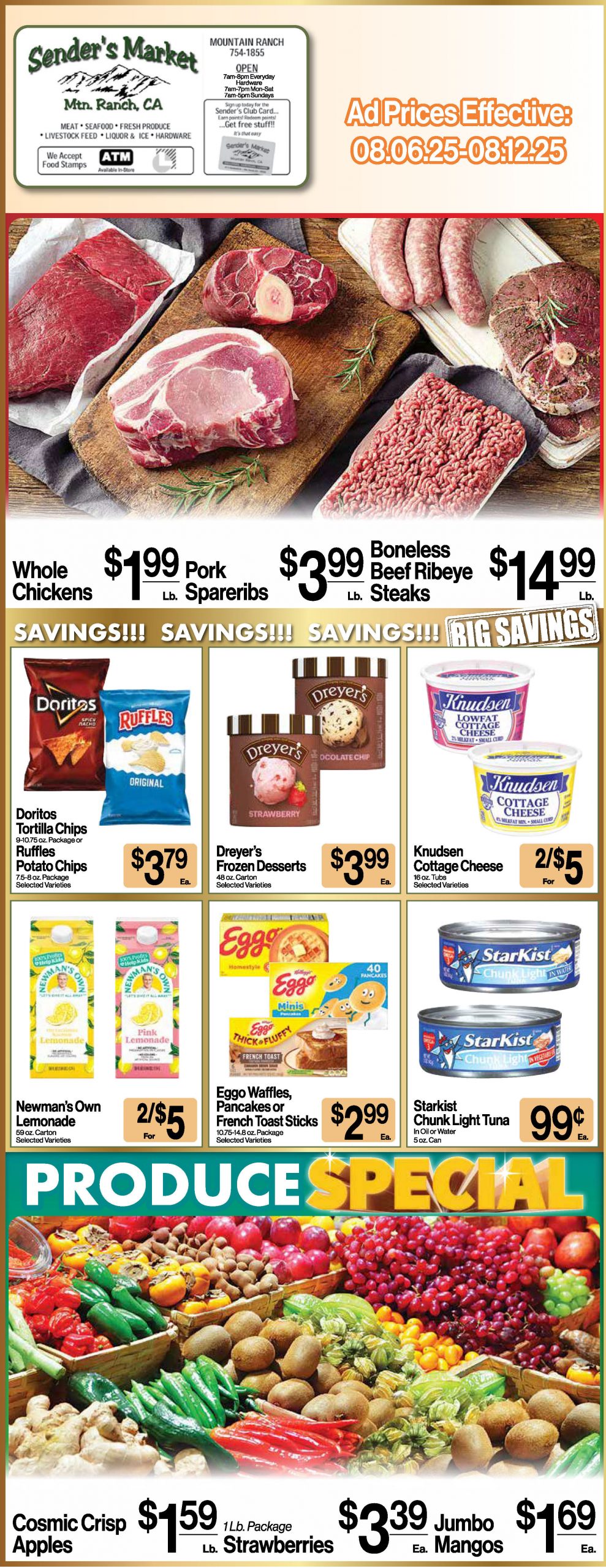 Mountain Ranch, CA…In 1950, we started out as a family operation with Erich’s father and mother, August and Freida Sender, in a century-old adobe building. The upstairs was home to the Sender family, and the first floor included groceries, a meat market, a bar, and a small eating place called Opa’s Smokehouse. On Christmas morning in 1968, the old store was destroyed by fire. But in June 1969, Sender’s Market, Inc. was opened. Since that time, there have been many changes, including remodeling, expansion, and the addition of many employees. That’s also when we added the truss plant and purchased Sender’s Market Ace Hardware in Valley Springs. Today, we’re still family owned and still working hard to stock everything from pantry essentials to power tools. Whether you’ve got questions about the perfect cut of meat or the right kind of paint, our helpful, knowledgeable staff has you covered. Click on images below for larger versions.