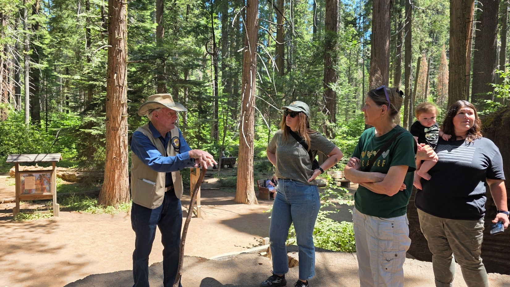 The event’s impact was amplified by two Mountain Oaks School teachers, Corie Ross and Sally Finch. Ross is a Calaveras Big Trees Park Aide and Finch volunteers for Calaveras Big Trees State Park and is a Calaveras Big Trees Association board member. Both are passionate about connecting students with the park’s rich biodiversity, history, and conservation efforts. Guided Meadow and North Grove hikes were led by knowledgeable docents — both retired teachers — who shared their expertise on giant sequoias and the park’s natural heritage.