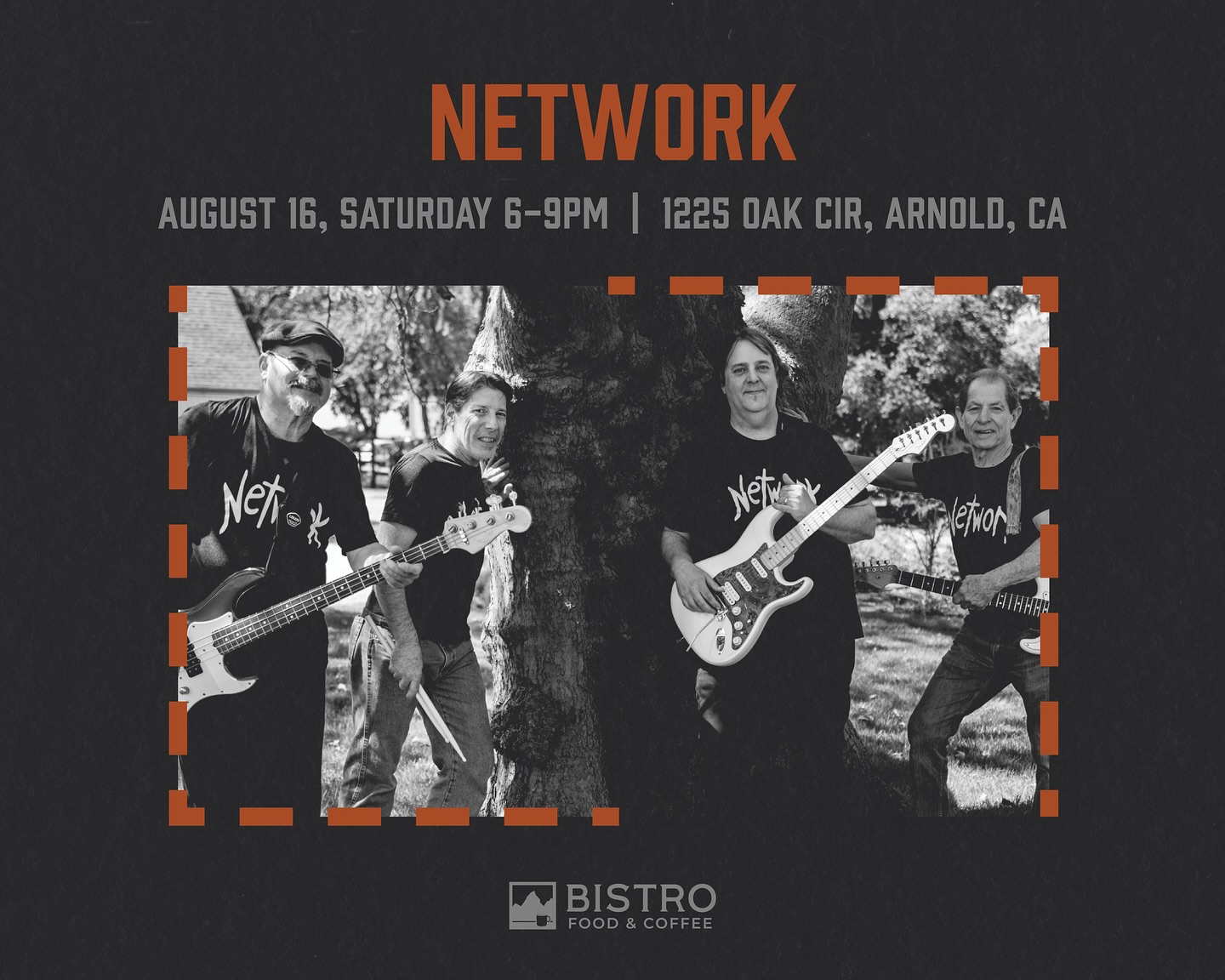 Arnold, CA…Network is plugging in and turning it up—classic rock all night long! Pair it with great food, cold drinks, and good company. See you all on Saturday (August 16)!