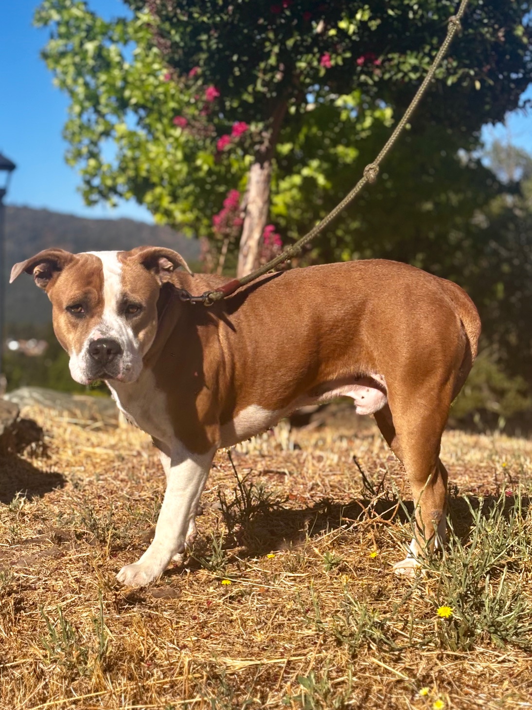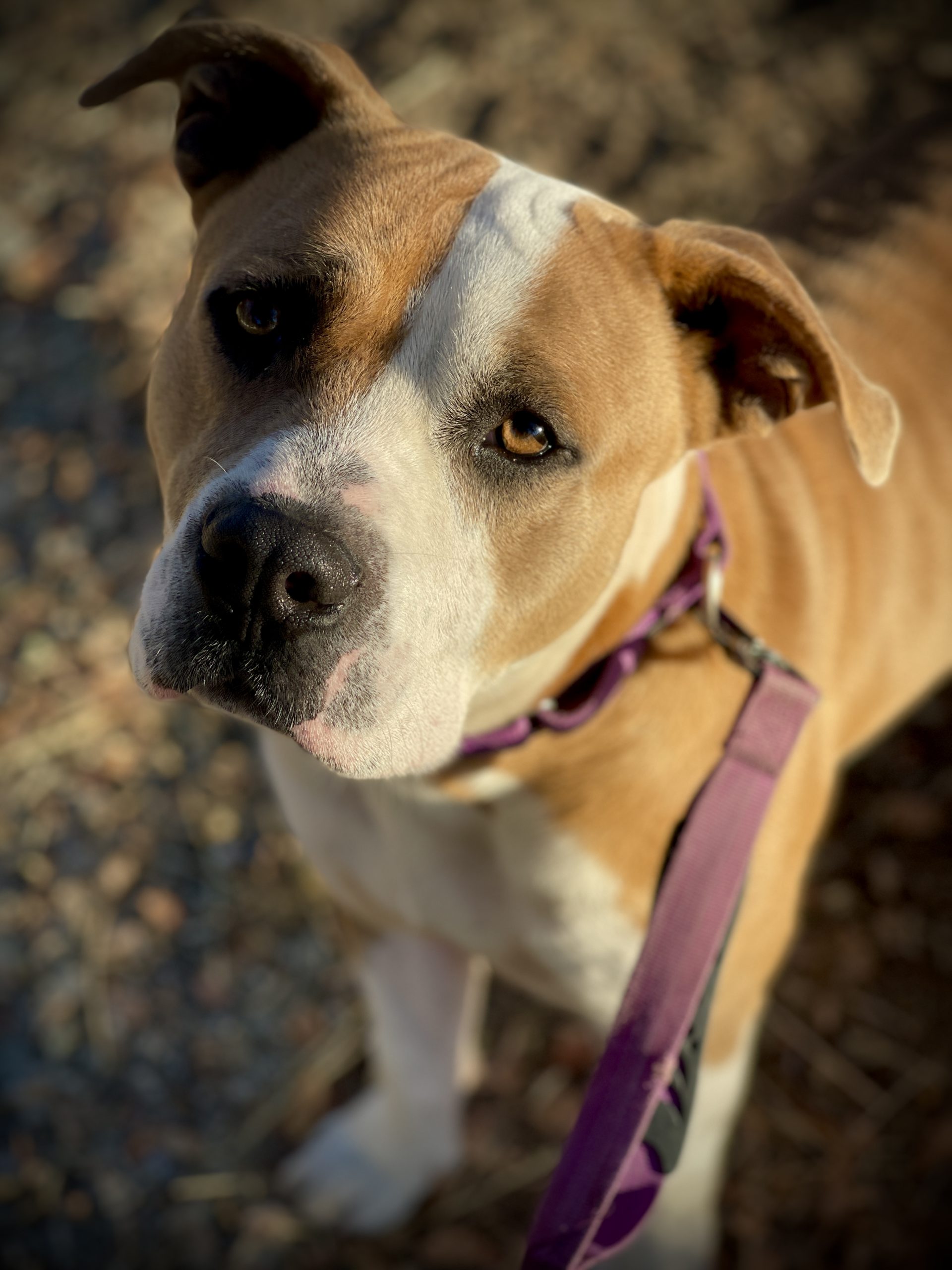 Uncle walks nicely on leash, checking in often with his handler, and enjoys his time outdoors. He is strong, so an experienced handler is recommended. He has reacted to barking dogs but is otherwise calm or mildly friendly toward others. With structure, reassurance, and continued training, Uncle will learn that the world is a safe place.