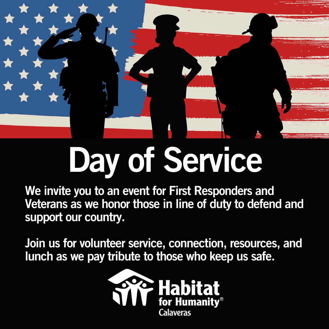 Valley Springs, CA…As a proud Veterans Build Affiliate, Habitat for Humanity Calaveras will host its 3rd annual 9/11 Day of Service on Saturday, September 13, 2025, at the Jenny Lind Veterans Memorial District Park in Valley Springs. This meaningful day is dedicated to honoring the sacrifice of veterans and first responders while also giving back to the community through service.