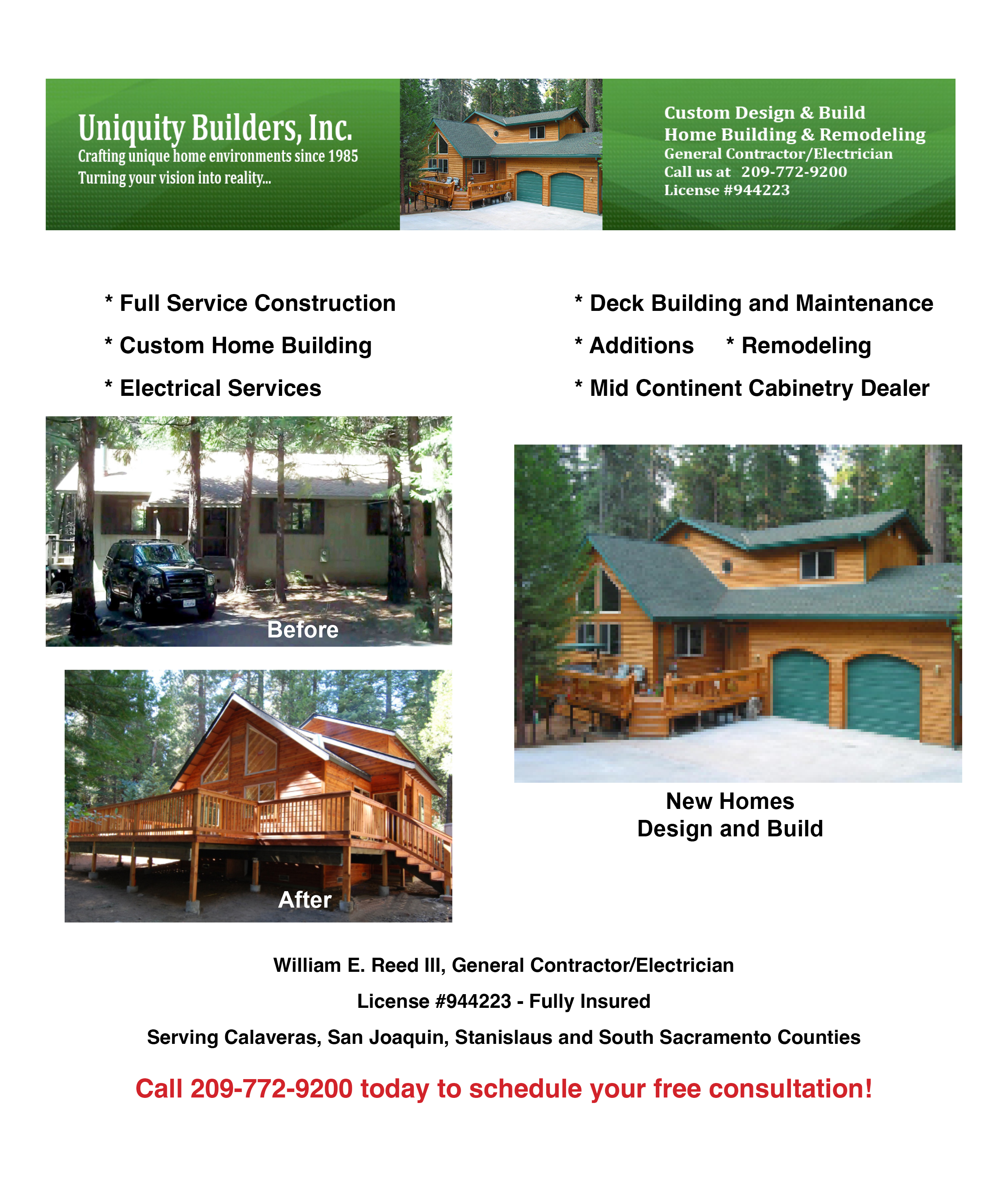 Uniquity Builders, Turning Your Dreams Into Reality Since 1985! Call 209.772.9200 & Get Started Today!
