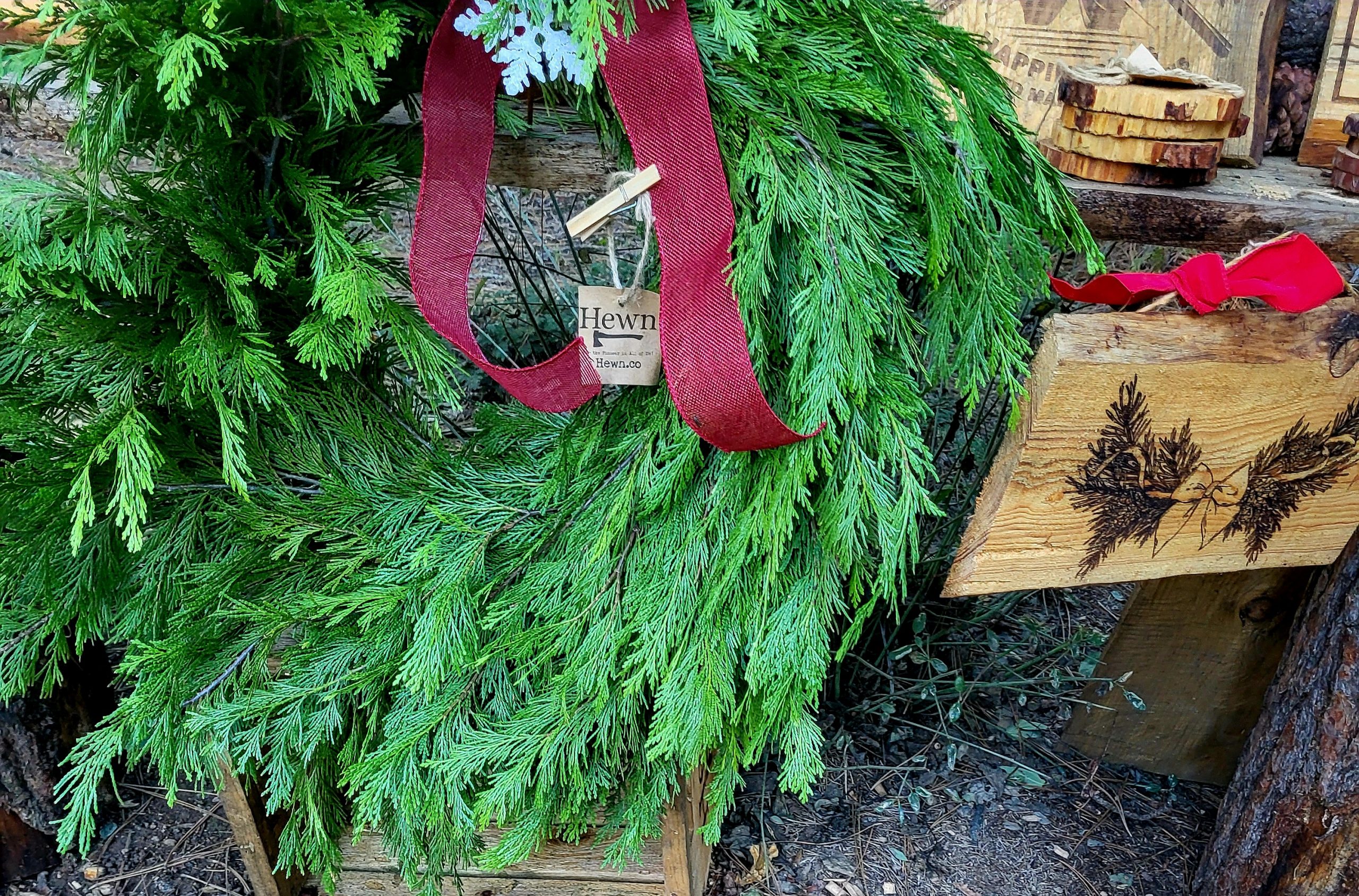 Arnold, CA…The Hewn Woodshed is now offering Fresh Live Christmas wreaths!