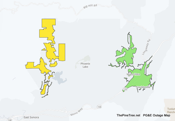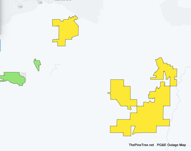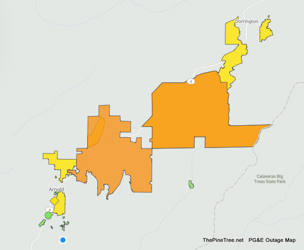 Arnold, CA…Over 2,000 PG&E Customers in the Arnold & Surrounding areas are powerless at this time. At least from PG&E. There are other smaller outages in the Groveland, Tuolumne, Rancho Calaveras & Sonora areas at this time as well. PG&E is not reporting any restoral times for most of these outages including the largest block in Arnold.