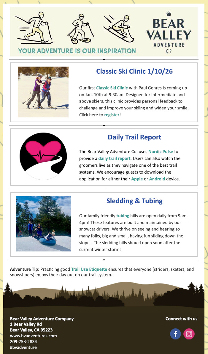 Bear Valley, CA…The Winter Wonderland that is Bear Valley is ready for all your Bear Valley Adventures. A full slate of activities awaits.
