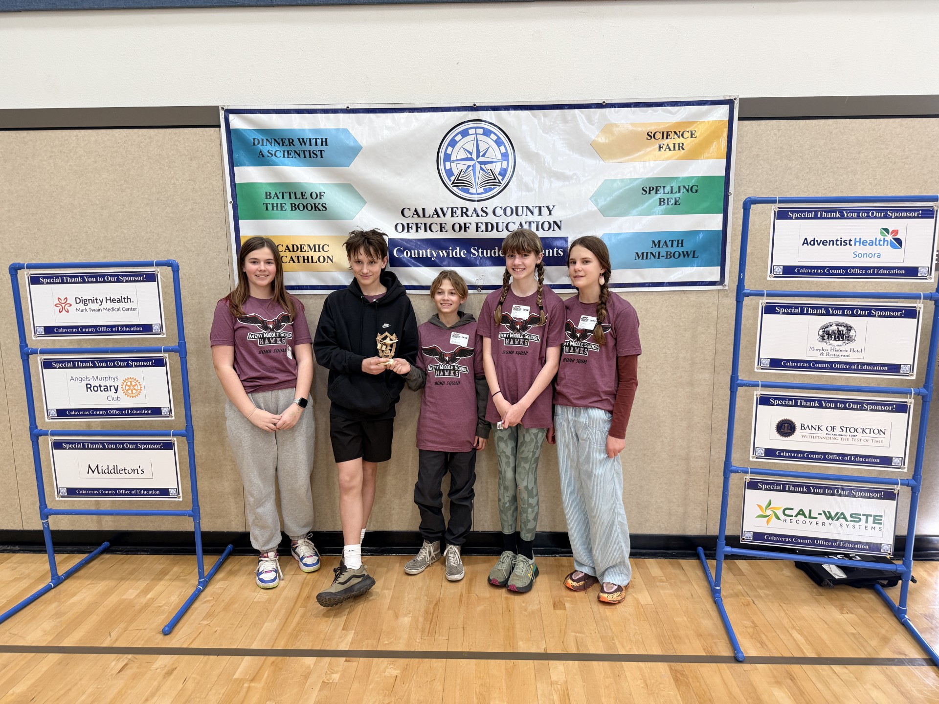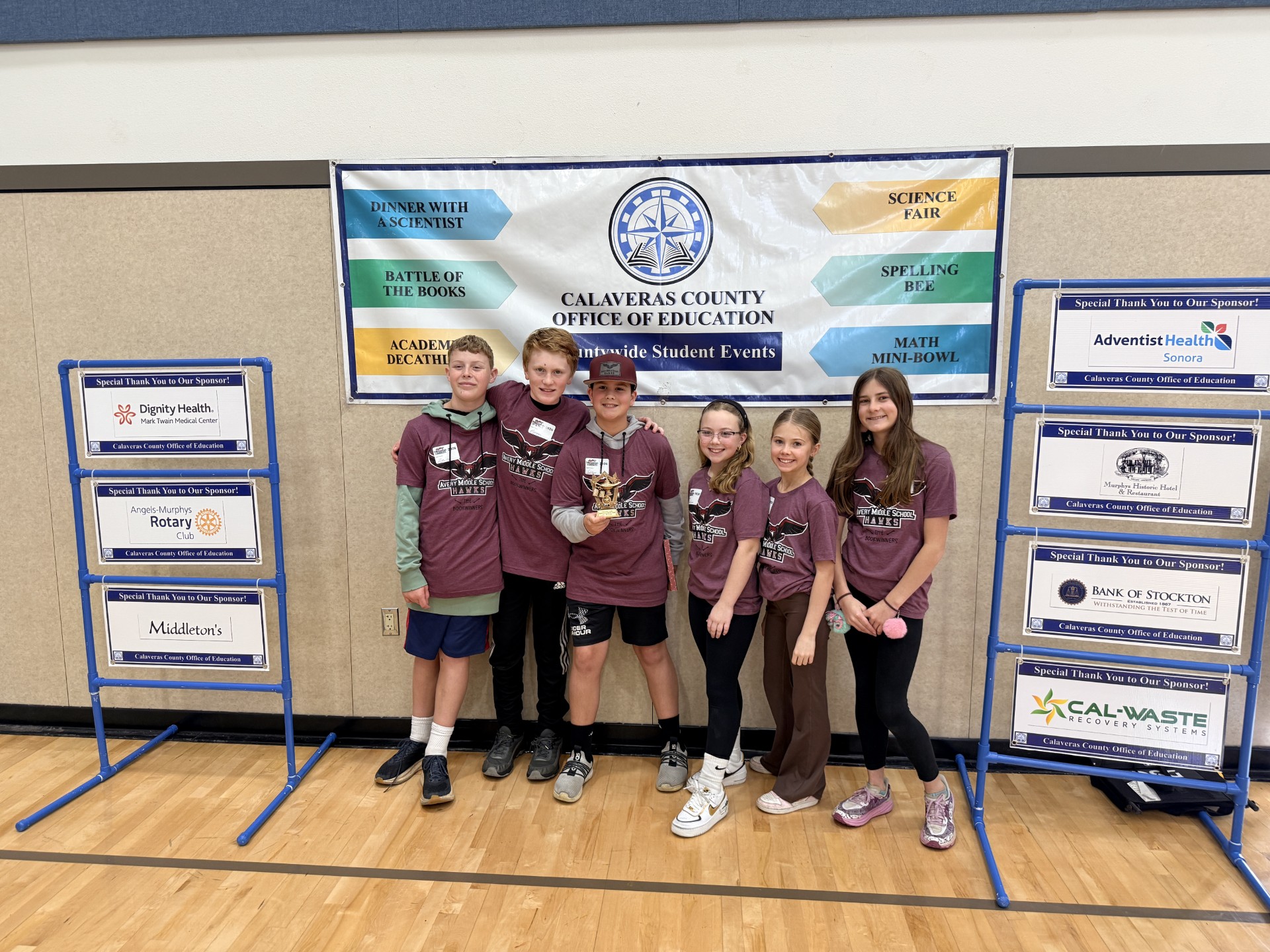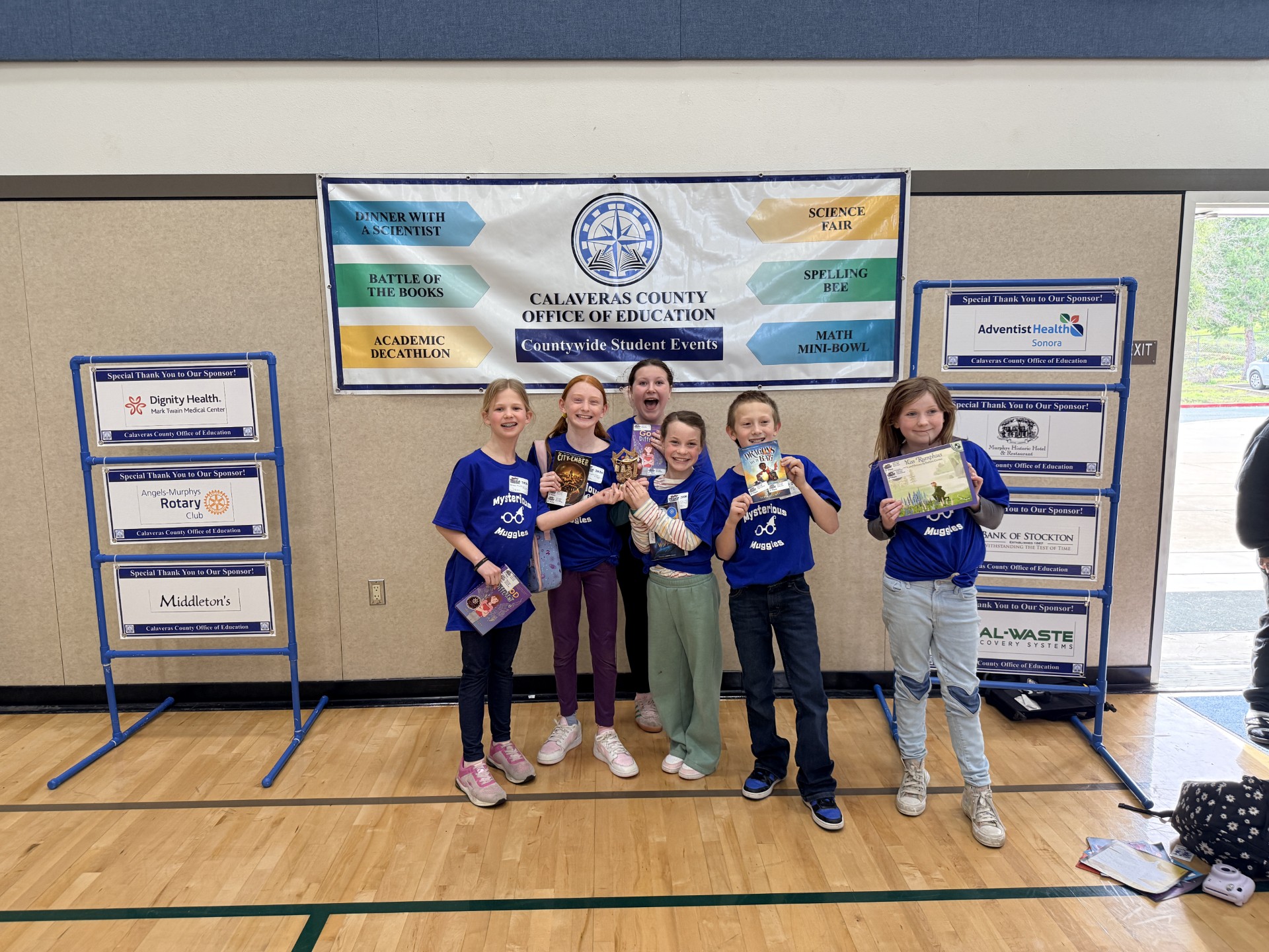 Student events such as Battle of the Books are made possible through the support of sponsors, volunteers, teachers/coaches, and families. Sponsors for this year’s event included the Calaveras County Office of Education, Adventist Health Sonora, Dignity Health Mark Twain Medical Center, Angels-Murphys Rotary Club, Bank of Stockton, Middletons, and Cal Waste Recovery Systems.