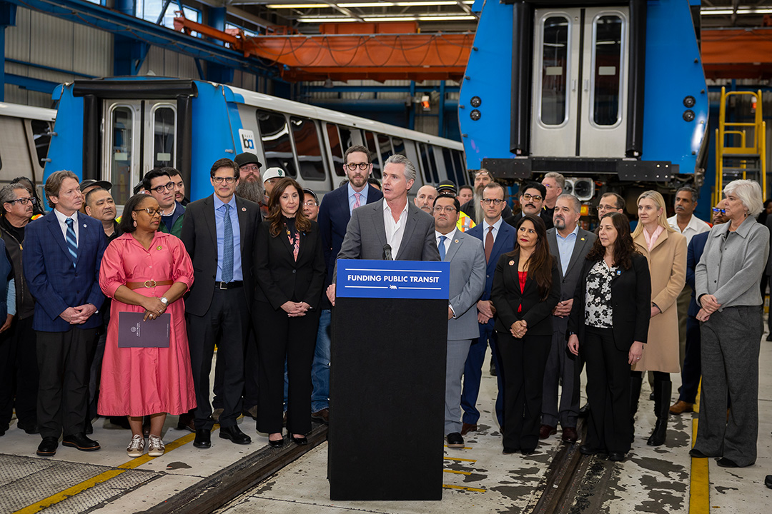 Colma, CA…Governor Gavin Newsom, alongside state and community leaders, today signed AB/SB 117, authorizing the California State Transportation Agency (CalSTA) to loan $590 million to the Metropolitan Transportation Commission (MTC) from the Transit and Intercity Rail Capital Program (TIRCP). The Bay Area Transit Loans measure will support and stabilize Bay Area transit services as the region continues emerging from the impacts of the pandemic and ridership continues to rebound.