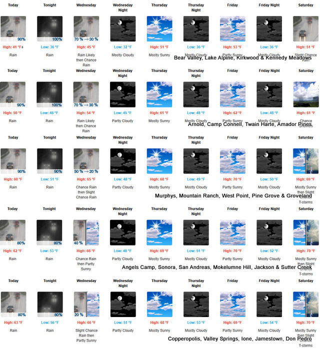 Arnold, CA…The latest detailed weather reports from NWS Sacramento for the West Slope & Motherlode are below…