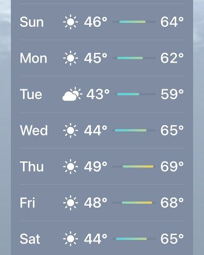 The forecast is sunny and warm with no snowstorms on the horizon.