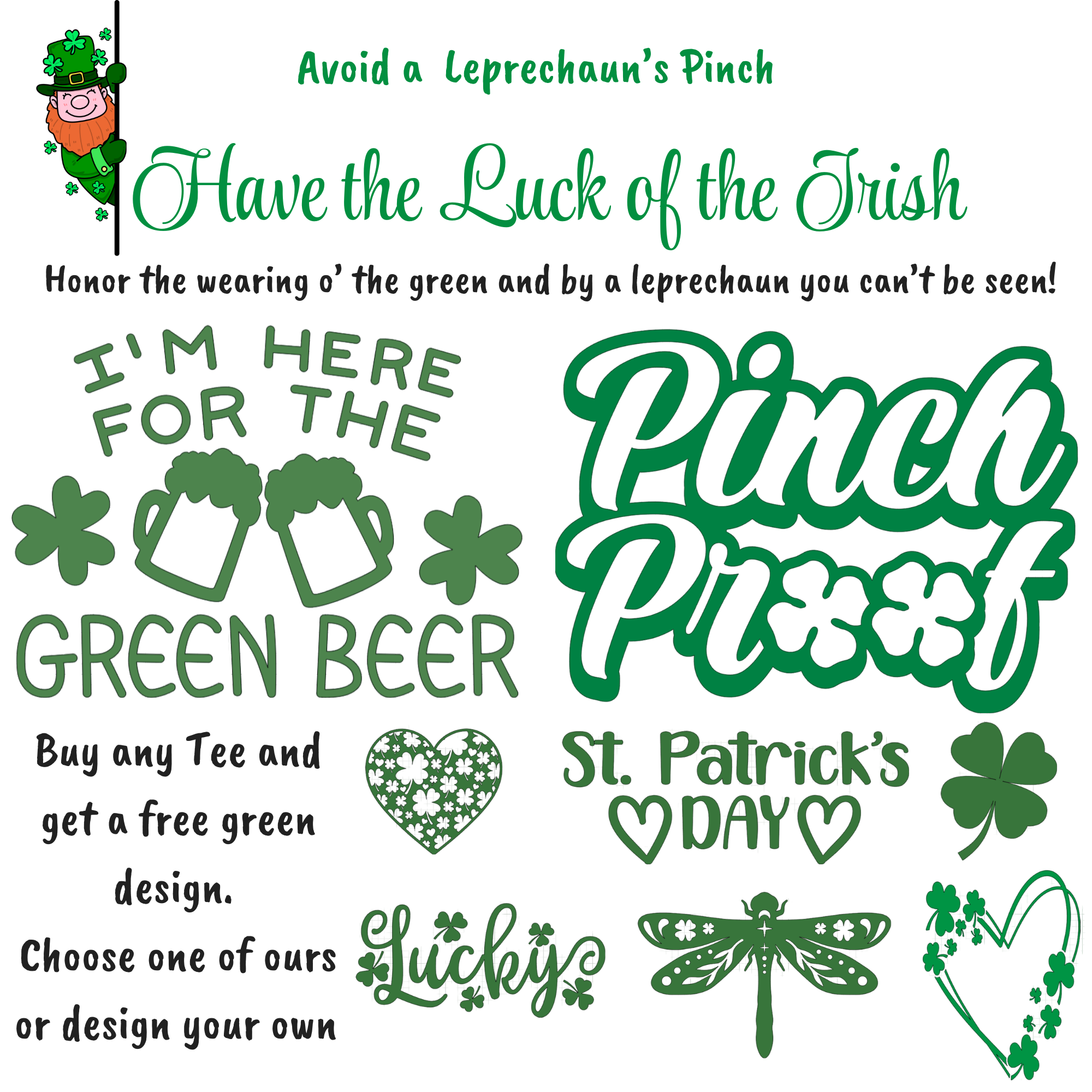 This Weekend: Specials on all Sweaters & Hoodies. Plus, Get your Green On (or get pinched) with a free Vinyl design.