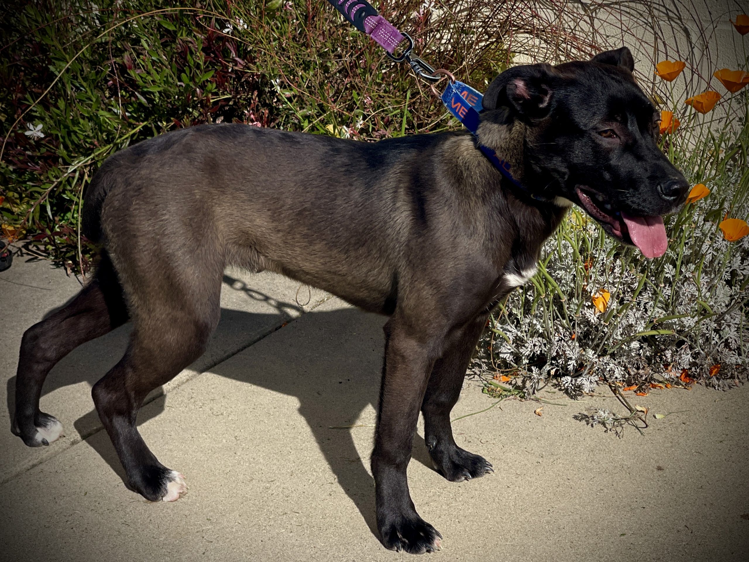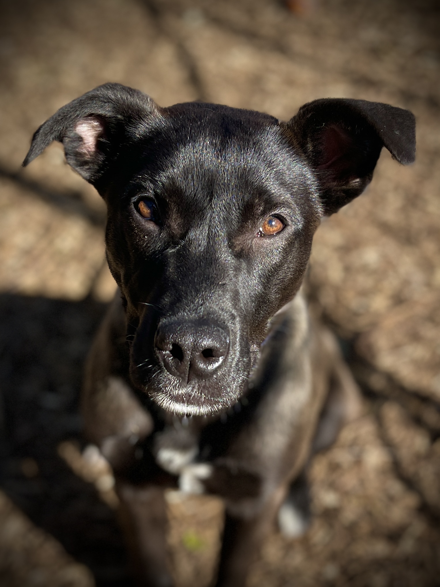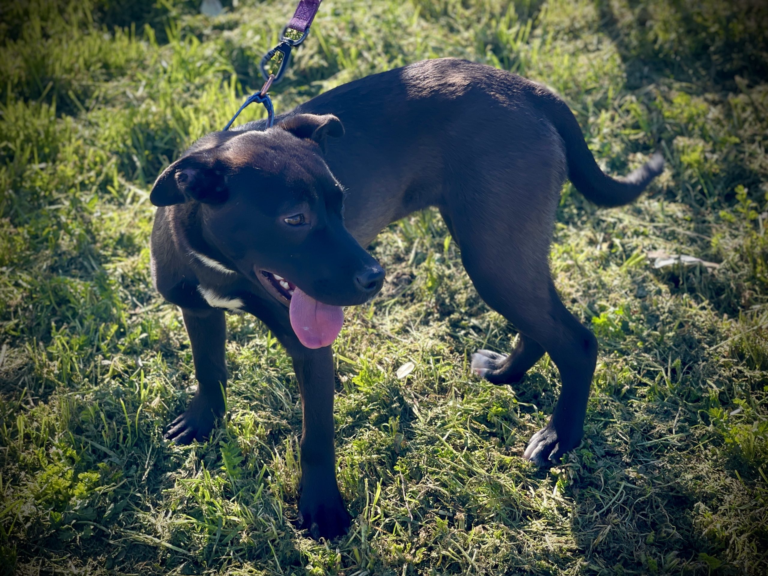 San Andreas, CA…Meet Birdie (A060498), a female Pit Bull/Labrador Retriever mix, about 7 months old and weighing 30 pounds. Birdie is a sweet young dog with a sleek dark coat and bright, expressive eyes. She was found straying near Birds Way in Angels Camp, which inspired her cheerful name. At just seven months old, she still has plenty of puppy enthusiasm, but her affectionate nature quickly wins people over.