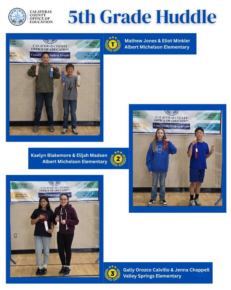 The success of the Math Mini Bowl is made possible through the generous support of community partners including Dignity Health – Mark Twain Medical Center, Adventist Health – Sonora, Bank of Stockton, Middleton’s, Angels-Murphys Rotary, and the Calaveras County Office of Education. CCOE also extends its sincere appreciation to the many volunteers who contributed to the event’s success, including CCOE’s Technology Department for their support throughout the day.